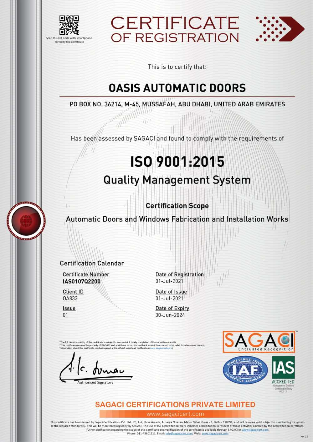 Oasis Automatic Door, based in Abu Dhabi, UAE, has been a leader in the automation industry since 2013. We provide a range of products, including automatic doors, gates, shutters, and access control systems. Our commitment to quality, innovation, and reliable customer service has helped us build a strong customer base and develop stronger business relationships.
